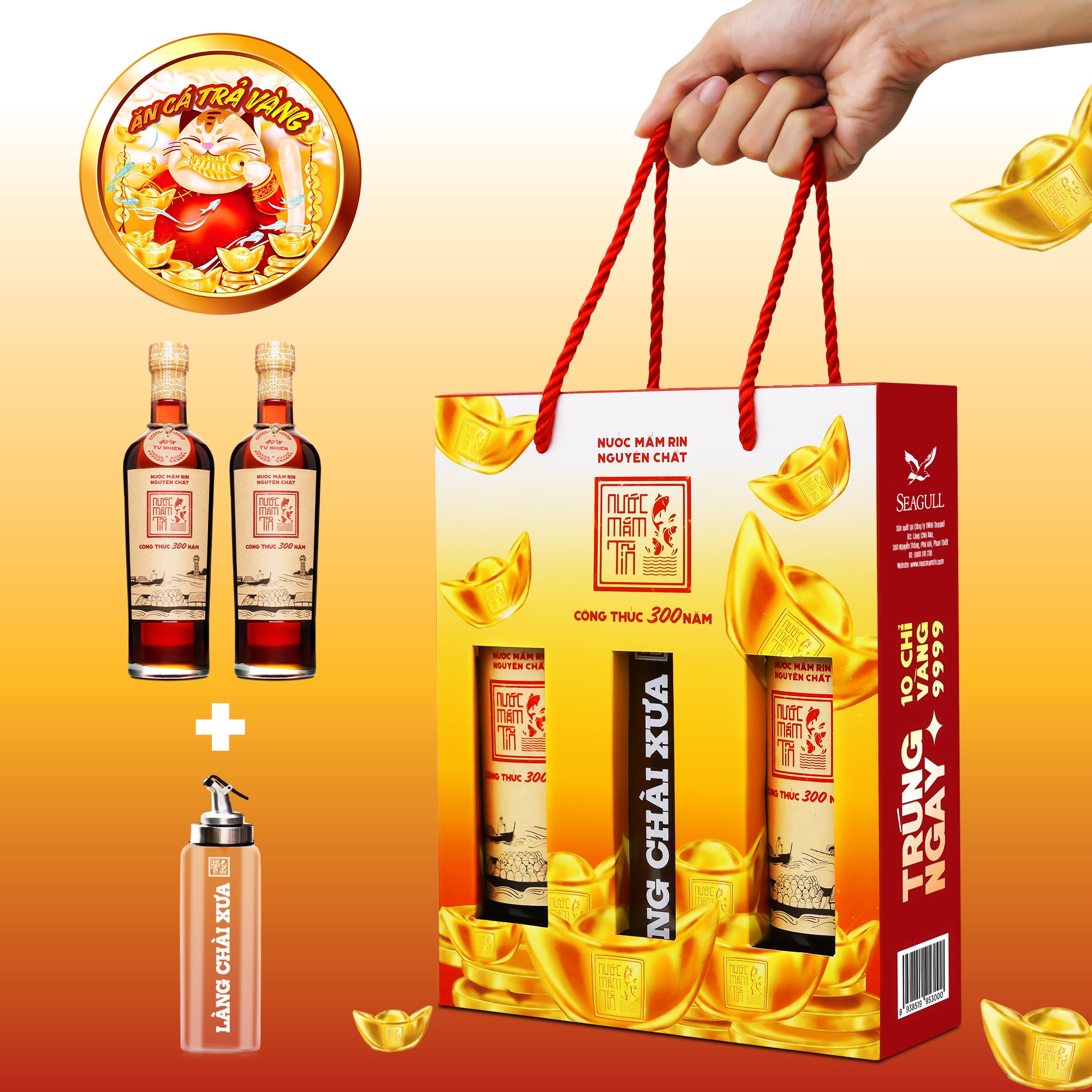 - Đóng gói: 02 Chai nước mắm + 01 bình rót một chạm