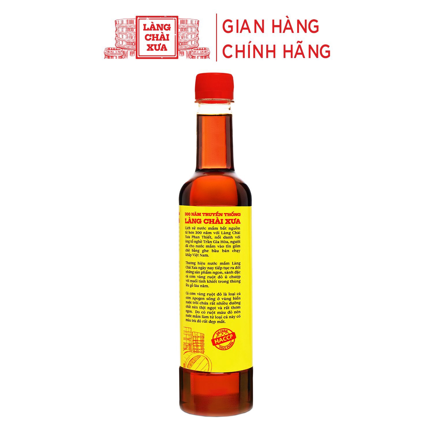 - Tên sản phẩm: Nước mắm làng chài xưa cá cơm vàng ruột đỏ chai 525ml